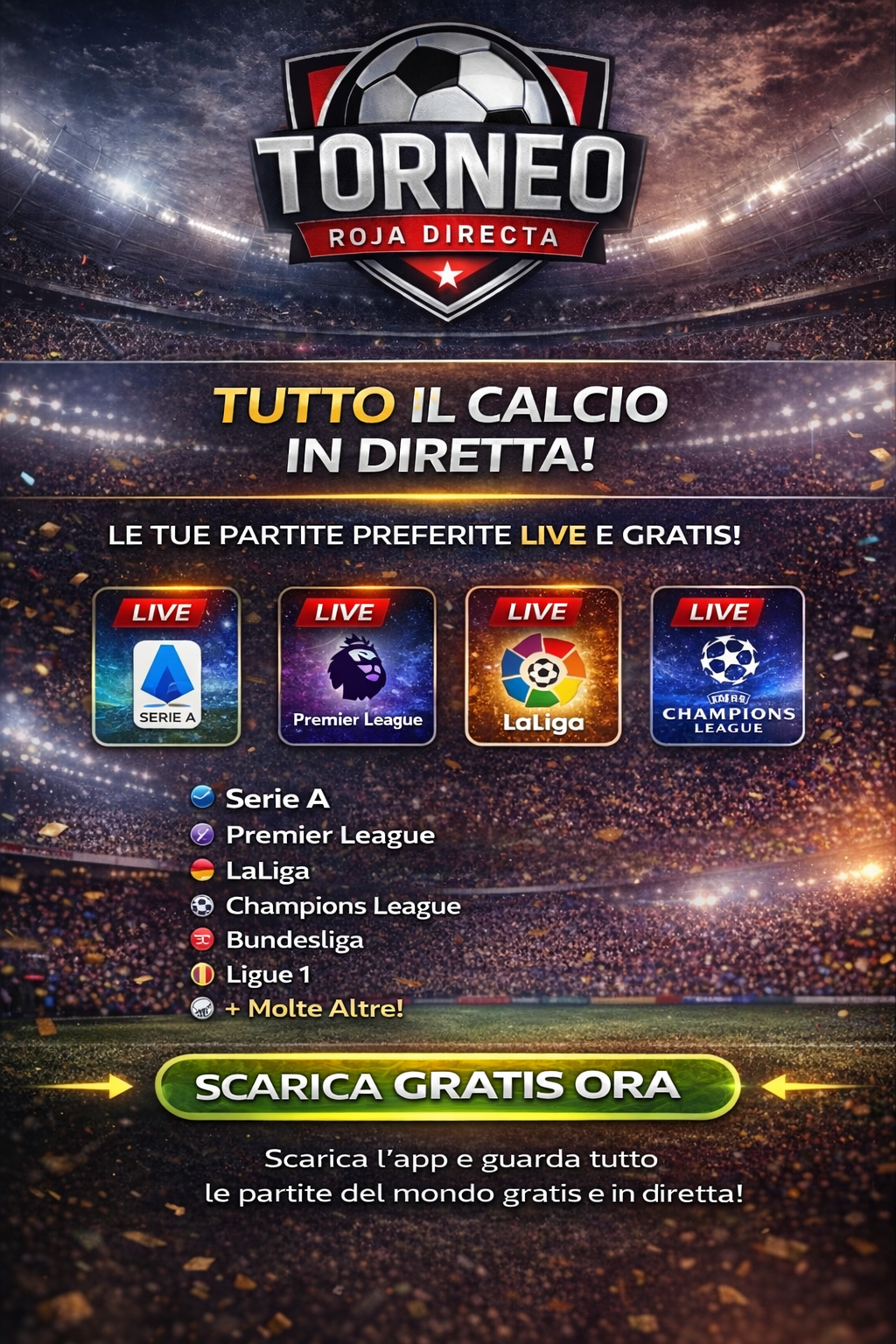 Roja Directa TV es la mejor app para ver fútbol en vivo y deportes en streaming. Mira todos los partidos en HD, sin suscripción y sin anuncios invasivos. Disponible en todos los dispositivos Android, con actualizaciones continuas y nuevos canales cada semana.